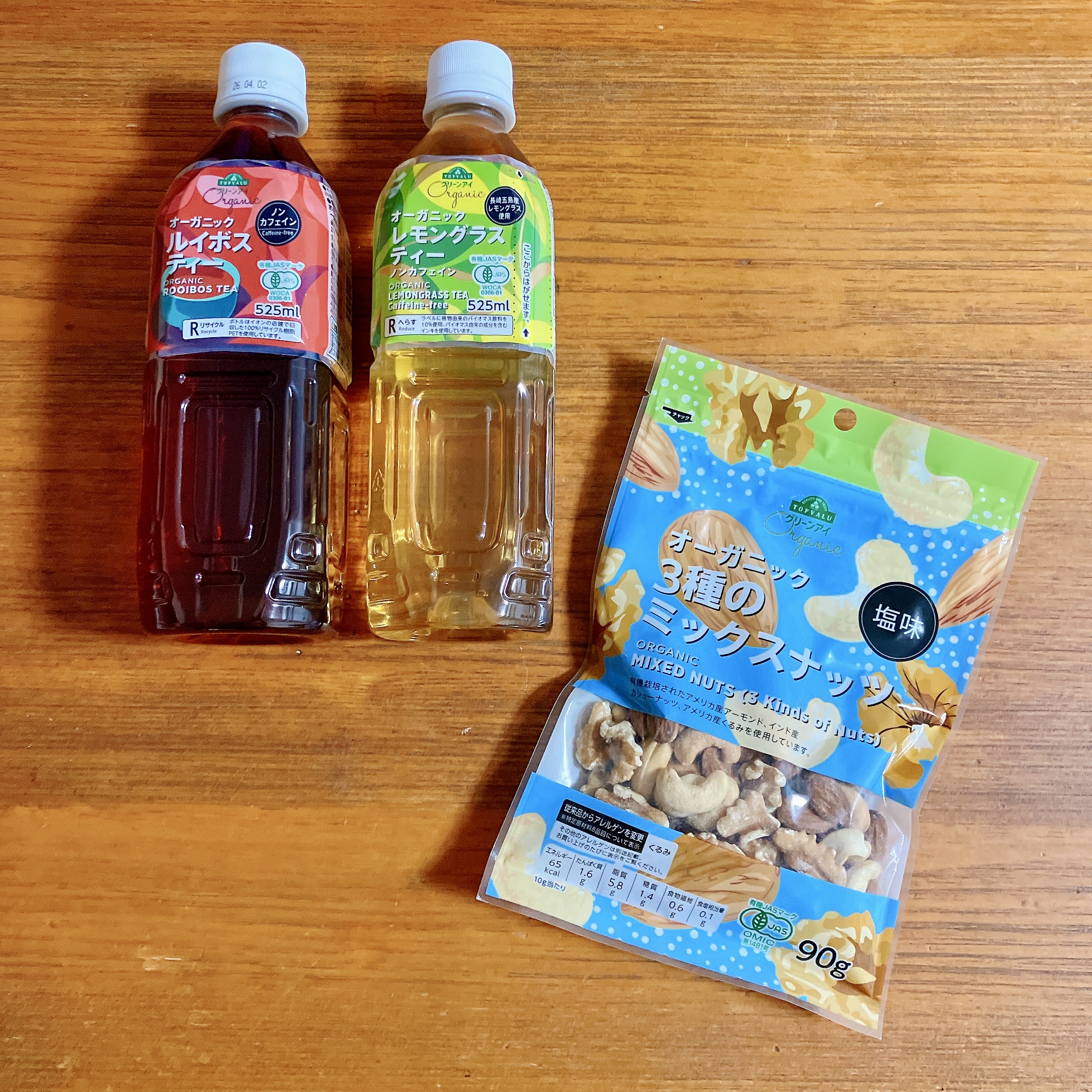 そしてお茶は、娘はオーガニックのルイボスティー、私はオーガニックのレモングラスティーを持参。探すとリーズナブルで安心安全なものもあります。AEONはオーガニックの飲み物がリーズナブルで買えるのでありがたいです。