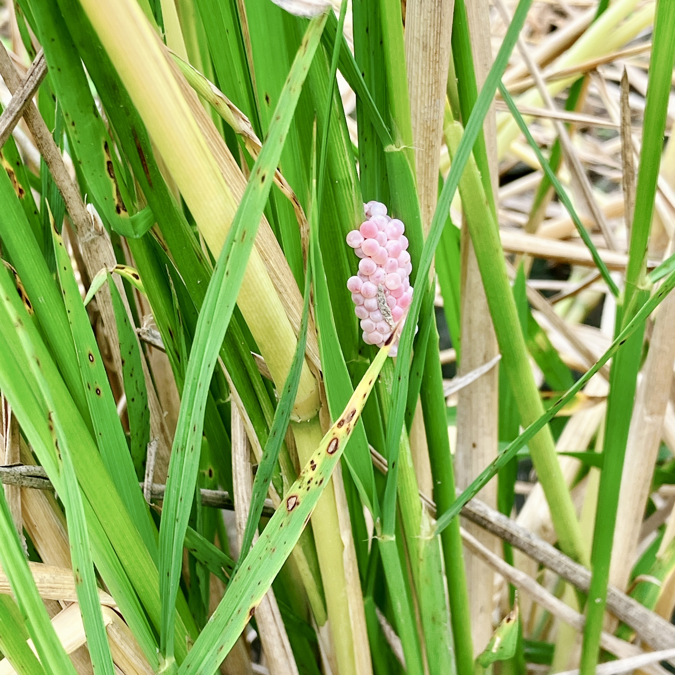 それから、ひそかに 今年もあるかな?と娘と話していた『 ジャンボタニシの卵 』を見つけて 盛り上がっていた私たち。外来種で、濃いピンク色をしている卵は気持ちが悪いだけでなく神経毒もあるので見てるだけですが、今年は乾燥していたのか、去年より色が薄くてびっくり!今年の暑さの影響をいろんな場面で感じました。